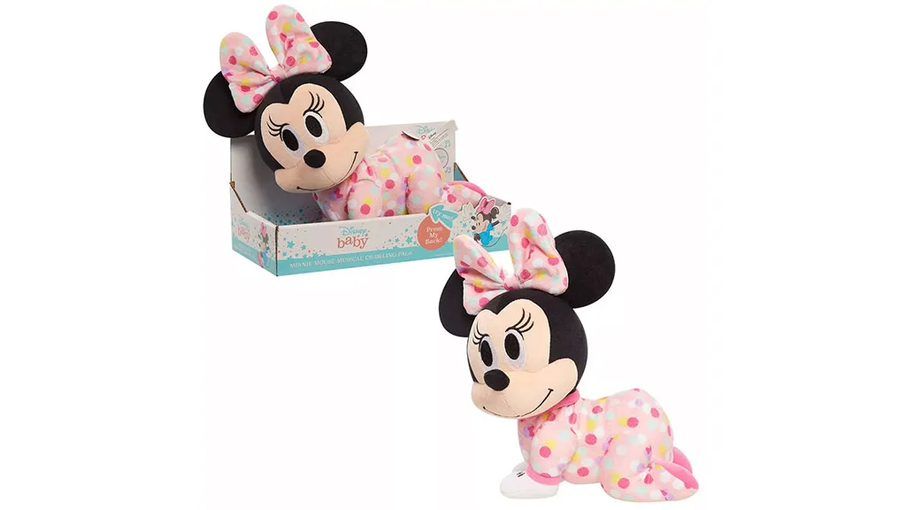 Deti sa môžu naučiť plaziť s Minnie Mouse, s týmto interaktívnym plyšovým hračkom. Minnie začne plaziť, keď deti stlačia jej chrbát, a hrá upokojujúcu hudbu a hovorí.