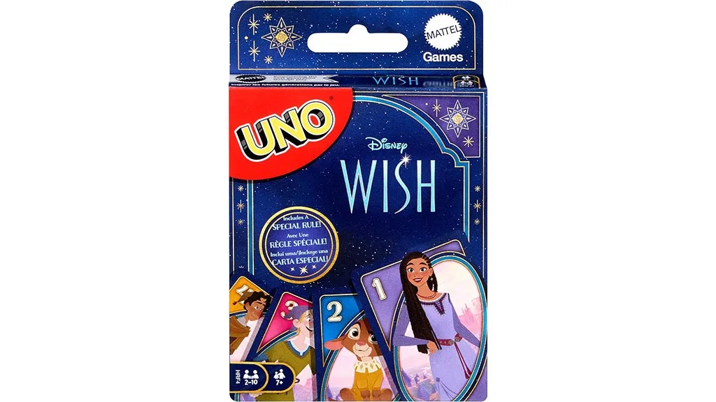 Najnovší film od Disney sa objaví v jednej z klasických hier od Mattel. Táto verzia Uno obsahuje ilustrácie všetkých rozličných postáv z Wish, vrátane Asha, Valentino, Dahlia a mnohých ďalších!