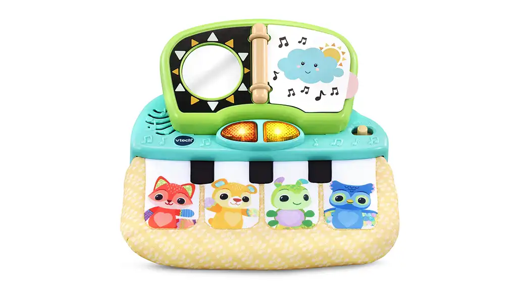 Táto trojv-une sada zaujme deti, zatiaľ čo budujú svoju svalovú silu. Keď sa deti naučia mieriť, môžu objaviť klavír tým, že stlačia klávesy a listujú, aby počuli piesne a slová. Keď deti začnú chodiť, môžu použiť rukoväť, aby si so sebou vzali klavír.
