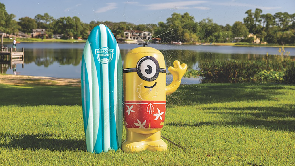 Pripojte tento postrekovač inšpirovaný Mimoni k štandardnej záhradnej hadici, aby ste získali 360-stupňový otočný vodný sprej a dva ďalšie postrekovacie body. 4,5 stopy vysoký Mimoň je ľahký a ľahko prenosný.
