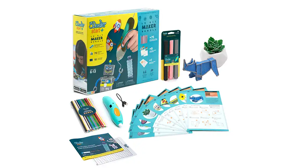 Pre starších tínedžerov si pozrite sady Create. Či už si vyberiete Maker Bundle alebo Essentials Set, nájdete v nich kreatívnu aktivitnú sadu, ktorá zamestná obidve hemisféry ich mozgu. Navyše, má to ďalšiu výhodu, že možno na chvíľu odložia svoje telefóny!Pre mladšie deti sú tu sady Start. Dostupné sú aj vo forme Essentials Set a balíčka Maker, ktoré deti ohromia, keď kreslia priamo do vzduchu! Deti sa zoznámia s priestorovým vnímaním, 3D konceptmi a ďalšími STEM zručnosťami, zatiaľ čo po ceste rozvíjajú svoju kreativitu.Pozri si všetky zábavné možnosti 3Doodler nižšie!Create Maker Bundle je nová všetko-v-jednom sada, ktorá spája praktickú kreativitu s kritickým myslením, zatiaľ čo deti navrhujú riešenia pre každodenné problémy v 3D. Táto sada podnecuje detskú predstavivosť, poskytujúc im možnosť vizuálne vyjadriť svoje nápady stlačením tlačidla. S viac ako 20 rôznymi dizajnovými projektmi, ktoré sú rôznorodé...Stručný popis produktu: Deti môžu hmatateľne objavovať kreatívne výzvy v 3D, čím zvyšujú svoje sebavedomie a inšpirujú svoju predstavivosť. Táto všetko-v-jednom sada umožňuje deťom od 14 rokov a starším spoznať designové myslenie a rozšíriť hru o sto bezplatných projektov, návrhov hodín, šablón a videí typu "ako na to". Sada obsahuje 3D pero, úplne nové farby a viac...