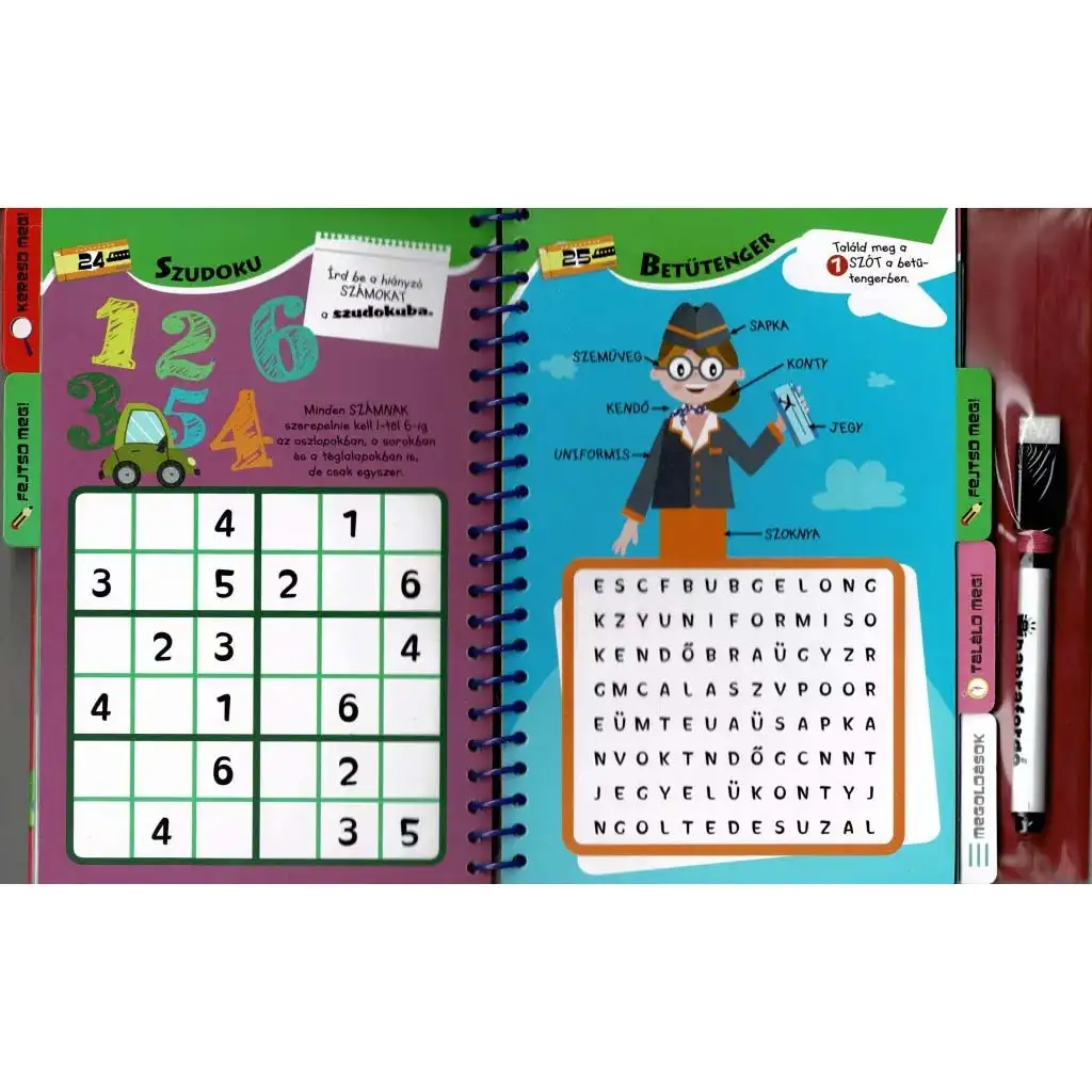 Špirálová väzba a mazateľná fixka umožňujú úlohy opakovane riešiť, takže kniha je výborným spoločníkom na každú cestu aj na dlhší čas.