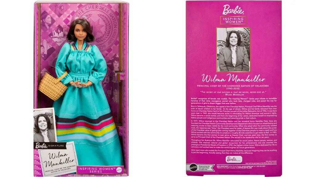 Nová bábika, ktorá bola navrhnutá na inšpiráciu bývalého náčelníka Čerokíjskeho národa, Wilma Mankiller, sa pridáva k sérii Barbie Inspiring Women. Bábika vyzerá ako Wilma Mankiller, nesie pletený košík a nosí tyrkysovú šaty.