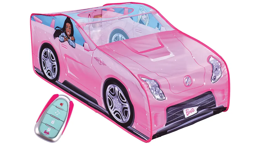 Táto rôznorodá a inkluzívna séria bábik Barbie odráža svet, aký dnes vidia deti. Bábiky Barbie a Ken predstavujú rôzne farby pleti, typy vlasov, telesné typy a módy.Oživ svoju aktívnu, predstavivú hru s týmto 4 nohy dlhým prispôsobiteľným pop-up stanom, ktorý obsahuje nálepky inšpirované Barbie. Súčasťou je aj kľúčenka so zvukovými efektmi a frázami Barbie.