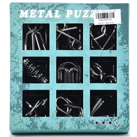 S touto skvelou deväť dielnym setom deti môžu vyskúšať svoju trpezlivosť, logiku a kreatívne myslenie. Kovové hlavolamy sú špeciálne tvary zložené zo silného drôtu, ktoré majú vlastný spôsob spájania, viazania alebo dokonca oddeľovania dvoch zodpovedajúcich párov. V tejto sérii je deväť rôznych dielikov, s ktorými sa môžu otestovať deti alebo dospelí. Môžu otestovať svoju logiku a obratnosť. Táto hračka nie v každom prípade vyžaduje použitie sily, takže v tomto prípade je platné tvrdenie: viac rozumom ako silou.
