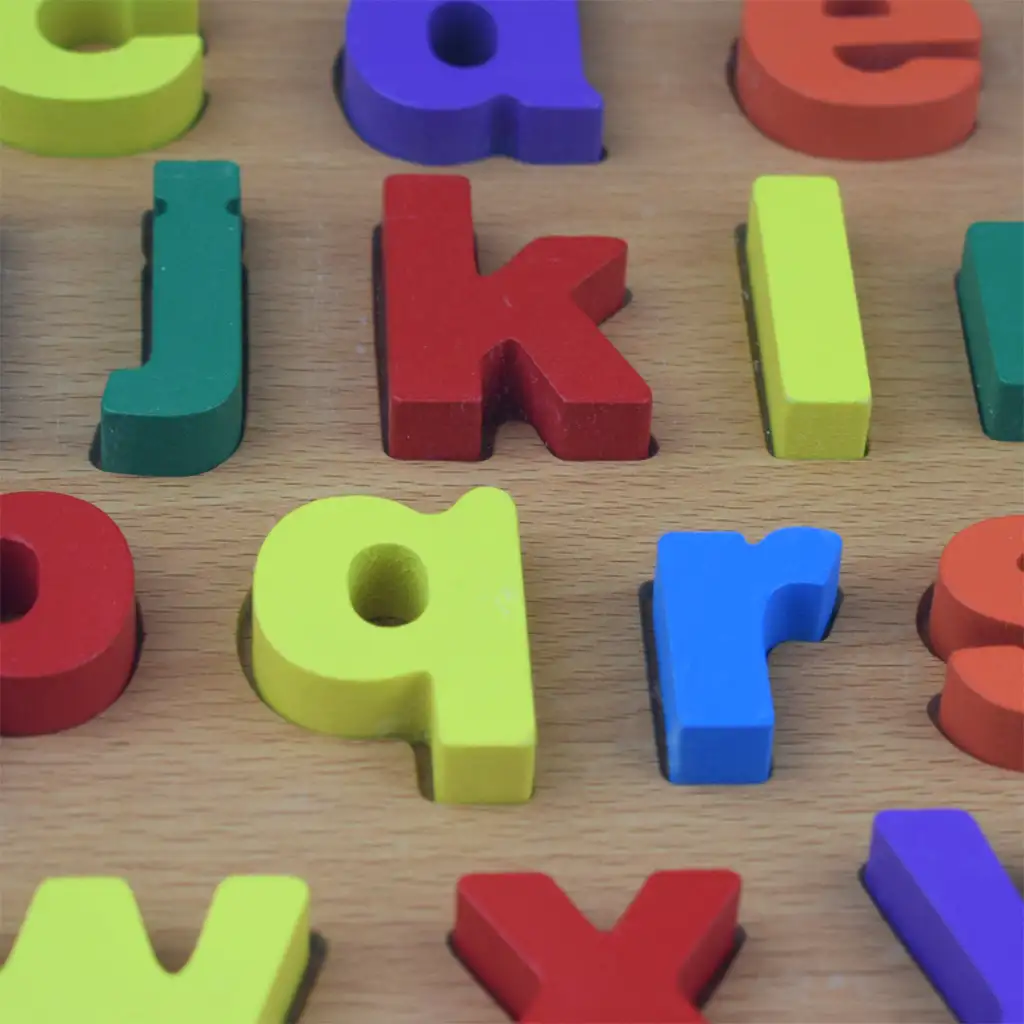 ABC farebné drevené malé písmená puzzle 30x22cmABC farebné drevené malé písmená puzzle 30x22cm