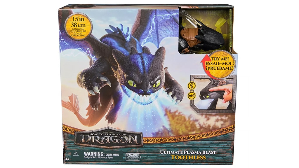 DreamWorks Draci Ultimate Plasma Blast 25-palcový Lietajúci Bezzubý od spoločnosti Spin Master je veľká figúrka, ktorá je navrhnutá podľa draka Nočná bes z filmovej série Ako si vycvičiť draka. Táto úžasná hračka má pohyblivú hlavu, nohy a krídla, a môže sa pochváliť rozpätím krídel 25 palcov (cca 63 cm), čo ju robí naozaj pôsobivou. Deti môžu stlačením tlačidla aktivovať efekt svietiaceho plazmového projektilu a zvuky hryzenia na chrbte Bezzubého. Figúrka má krídla s realistickým povrchom a filmovo verné spracovanie, takže je ideálnou voľbou pre každého fanúšika. Táto hračka poskytuje vzrušujúci zážitok nielen pre zberateľov, ale aj pre deti, ktoré si môžu znovu prežiť svoje obľúbené scény alebo vymýšľať vlastné dobrodružstvá s Bezzubým. Detailné spracovanie a špeciálne efekty robia túto fantastickú dračiu figúrku ešte realistickejšou.