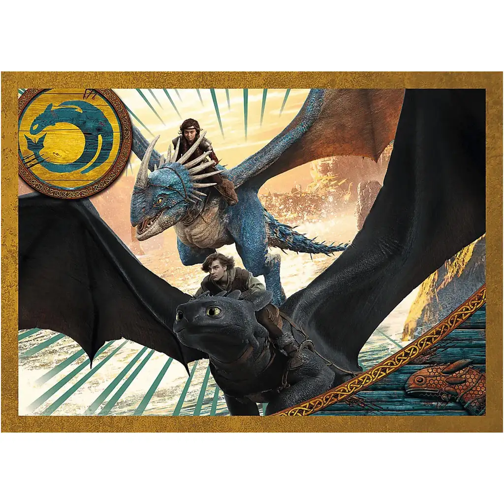 Letíte spolu s drakmi na nezabudnuteľné dobrodružstvo vo svete Ako si vycvičiť draka s touto skvelou 4 v 1 puzzle sadou! Tento Trefl balíček ukrýva štyri samostatné puzzle – vo verziách s 35, 48, 54 a 70 dielikmi – takže je ideálnou voľbou aj pre deti, ktoré sa s puzzlami ešte len zoznamujú. Každé puzzle zobrazuje ikonickú scénu z filmového univerza: objavujú sa na nich Štikút, Astrid, Bezzubý a samozrejme aj ďalší draci.