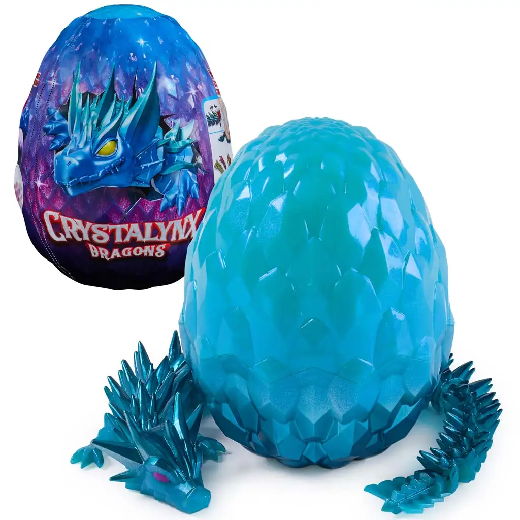 Staň sa súčasťou magického objavovania s Crystalynx Dračím vajcom! Toto vajce s kryštálovým efektom nie je len pôsobivé na pohľad, ale ukrýva v sebe aj výnimočnú, približne 31,75 cm veľkú, detailne spracovanú figúrku draka. Každý drak má pohyblivé končatiny, takže ho môžeš umiestniť takmer do akejkoľvek pozície – je to perfektná voľba na kreatívnu hru alebo ako antistresová „fidget“ hračka aj pre staršie deti.