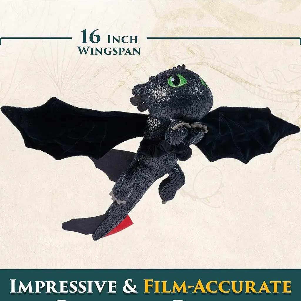 Vďaka špeciálnemu dizajnu je možné Bezzubka ľahko pripevniť na predlaktie detí, takže ich môže sprevádzať pri hre na hrdinov alebo pri pozeraní rozprávok. Detailné prevedenie známe z filmu, zelené oči, čierna „šupinatá“ textúra a slávna červená plutva na chvoste určite očarí všetkých fanúšikov. Navyše rozpätie krídel až 40 cm dodáva plyšovej hračke skutočne pôsobivý vzhľad. Perfektný darček pre každého fanúšika Ako si vycvičiť draka, ktorý túži po vlastnom drakovi na bežné dni.