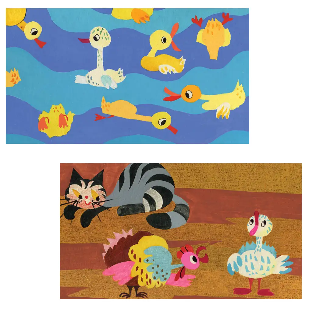 Pocity postáv a ich očarujúce jarné prostredie sú starostlivo vykreslené kresbami, ktoré vytvárajú intímnu a poučnú atmosféru. Tento diapozitív nielenže rozpráva príbeh, ale poskytuje aj zážitok, kde odvaha postáv a jedinečný štýl ich prostredia rovnako zasiahnu diváka. Krása príbehu Škaredého káčatka a posolstvá získanej krásy sú cítiť počas vizuálneho zobrazenia.