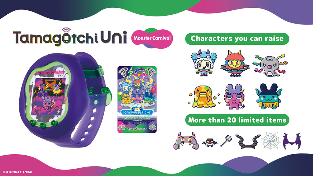 Vstúp do sveta Tamaverse s druhou vlnou zariadení Tamagotchi Uni. Táto kolekcia obsahuje nové kryty a remienky, limitované edície postavičiek a mini-hry. Angel Festival prináša roztomilú atmosféru s ružovým remienkom a pastelovými farbami. Monster Carnival vie, ako to roztočiť s odvážnym a punkovým dizajnom, ktorý obsahuje tmavé fialové a neónové zelené farby.