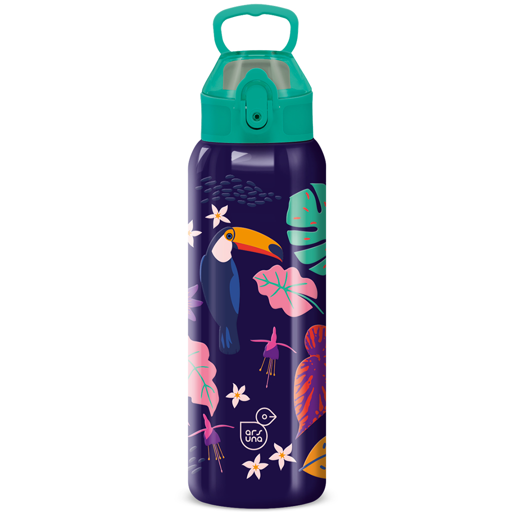Ars Una 3D kovová fľaša s dvojitou stenou a tukánom je ideálnou voľbou, ak hľadáte naozaj odolnú a efektnú fľašu pre vaše dieťa. Farebné tukánové a tropické vzory na tmavom podklade dodávajú jedinečný, veselý vzhľad, ktorý deti budú milovať. Objem 700 ml je ideálny na celodenné používanie, zatiaľ čo dvojitá stena s vákuovou izoláciou zabezpečuje, že nápoje si dlho udržia svoju teplotu. Praktické otváranie jednou rukou a pohodlná slamka uľahčujú používanie, preto je vhodná do školy, na výlety alebo na šport.