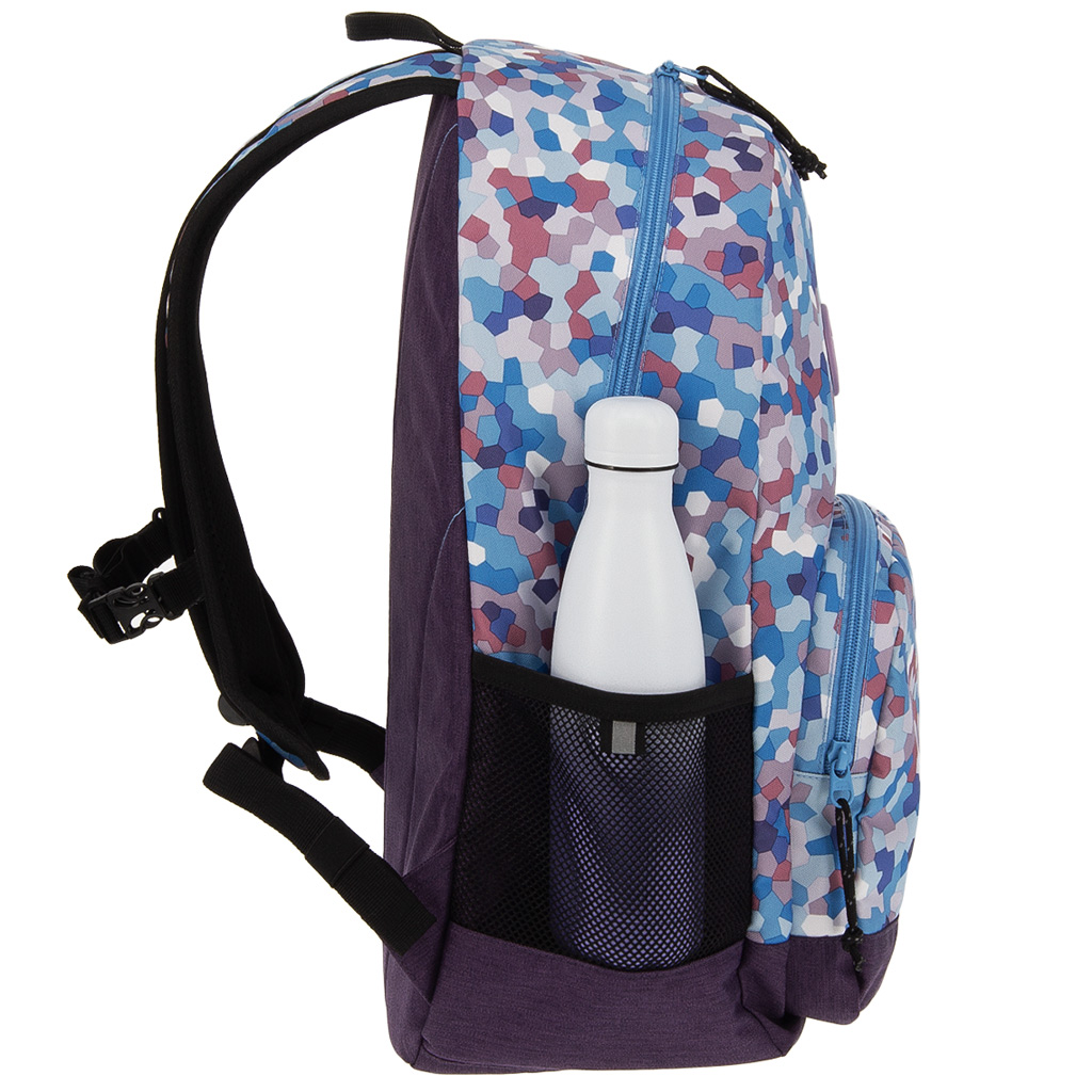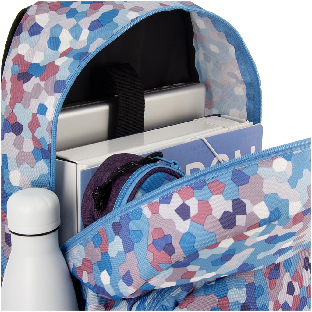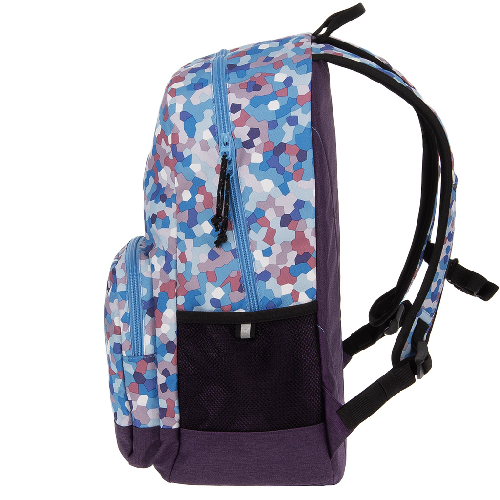 Batoh Ars Una Caleidoscope Blue AU-14 je perfektnou voľbou, ak pre svoje dieťa od 4. triedy hľadáte naozaj originálny a zároveň praktický školský batoh. Mozaikový vzor v odtieňoch modrej pôsobí moderne a veselo, takže určite vynikne z davu. Vďaka ergonomickému tvarovaniu je batoh pohodlný na každodenné nosenie: pevné, mäkko polstrované ramenné popruhy sú nastaviteľné, pripojiteľný hrudný pás pomáha udržiavať správne držanie tela a rovnomerné rozloženie hmotnosti.