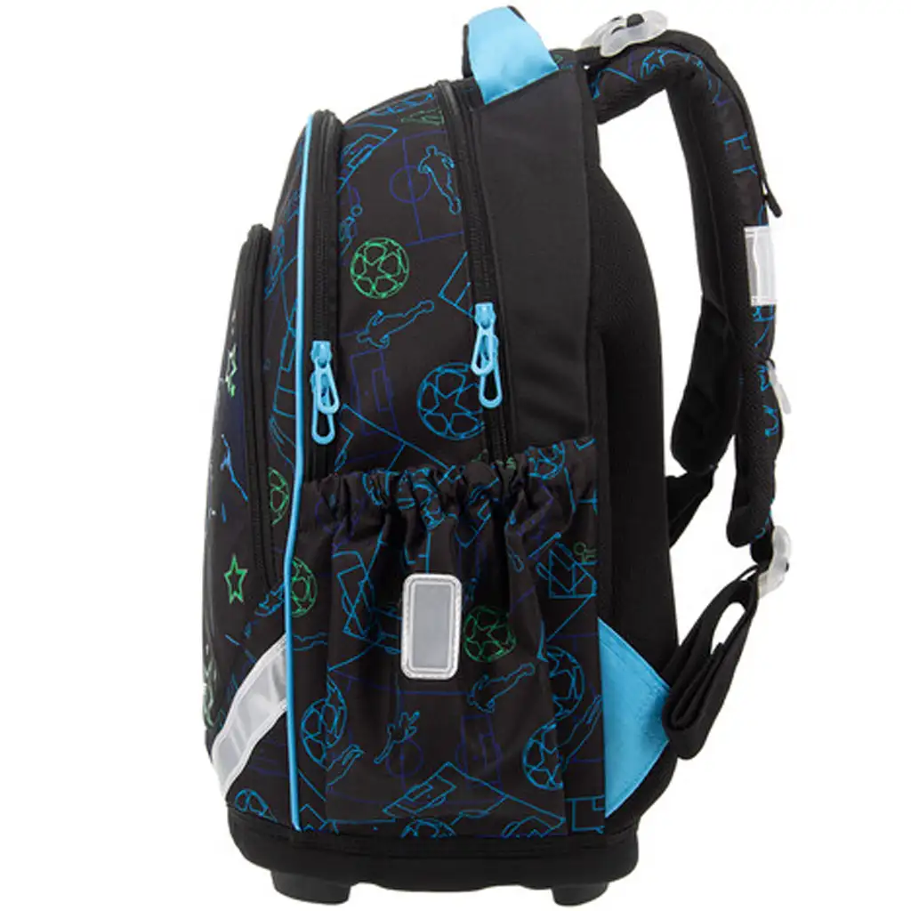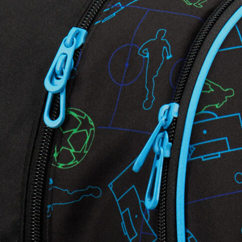 - 3 zipsové priehradky, držiak na písacie potreby, bočné vrecká a reflexné prvky pre bezpečnosť