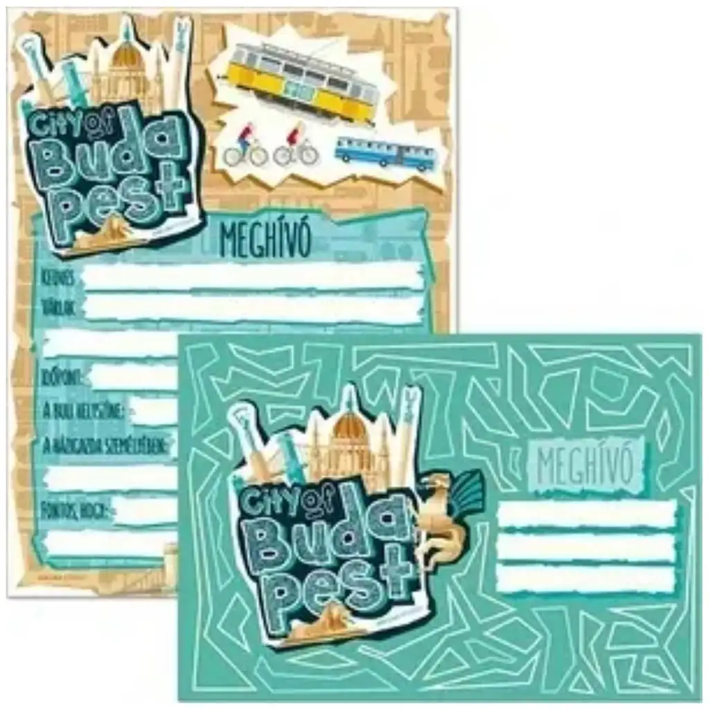 Ak chceš naozaj výnimočne spraviť pozvánky na narodeninovú oslavu, partypozvánka City of Budapest bude tou správnou voľbou! Táto pozvánka pripomína kúzlo Budapešti ikonickými pamiatkami a atmosférou hlavného mesta, takže už od prvého okamihu vnesie do príprav vzrušenie. Štýlová grafika s parlamentom, električkou a cyklistami určite získa obľubu u detí a dokonca aj dospelí ju ocenia.