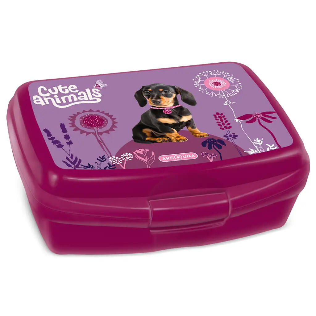 Ars Una Cute Animals - Puppy desiatový box je ideálnou voľbou pre vaše dieťa, ak má rado roztomilé zvieratká, najmä šteniatka. Tento uzatvárateľný plastový desiatový box je ozdobený vzorom jazvečíka, ktorý prináša farbu a radosť do každodenného života.
