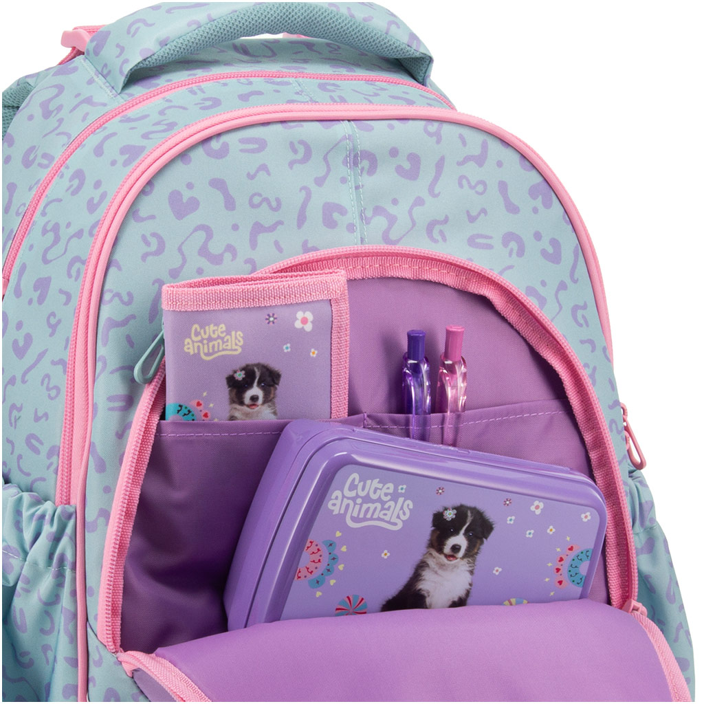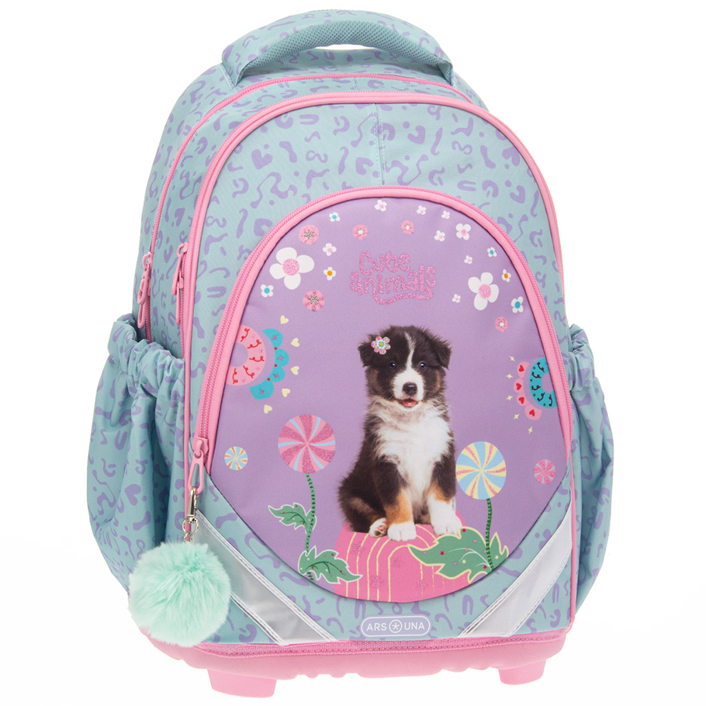 Školská aktovka Ars Una Cute Animals – Aussie s anatomickým tvarovaním je ideálnou voľbou, ak hľadáte pre svoje dieťa veselú, príťažlivú a ergonomickú tašku. Rozkošná grafika so šteňaťom, pastelové farby a hravé vzory si okamžite získajú srdcia detí, takže každý školský deň začne o niečo veselšie.