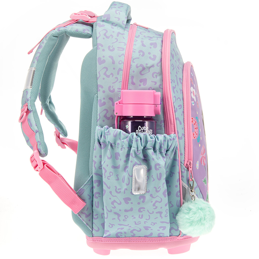 Vďaka praktickému dizajnu sú k dispozícii 3 priestranné priehradky na zips, do ktorých sa bez problémov zmestia všetky školské potreby. V najväčšej priehradke pomáha s organizáciou textilná prepážka, zatiaľ čo v menšej priehradke sú vyhradené miesta na písacie potreby a preukaz. Dve bočné elastické vrecká sú ideálne na fľašu alebo menšie predmety.