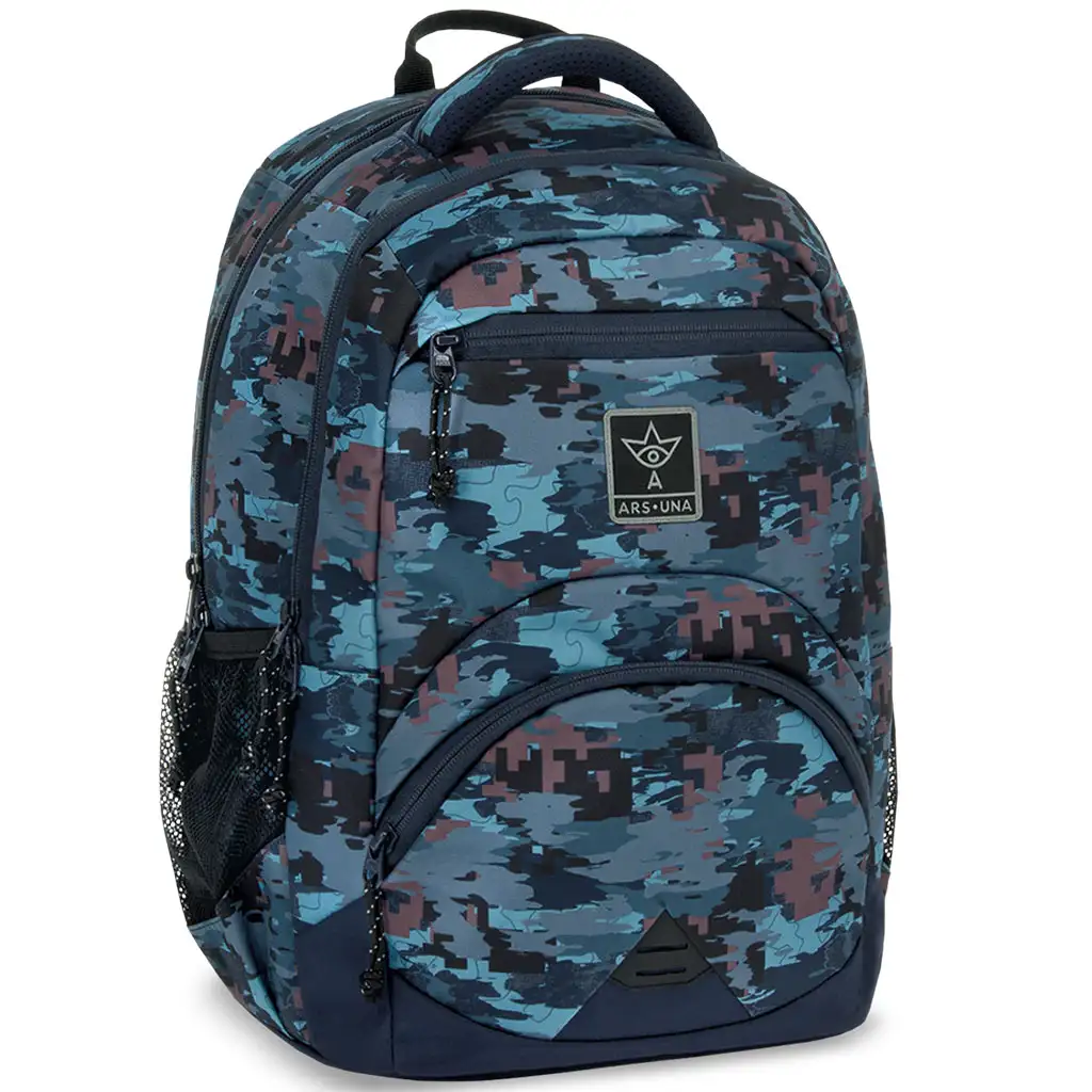 ARS UNA HYDE ERGONOMICKÝ BATOH je vynikajúcou voľbou pre každého študenta, ktorý má rád štýlové a funkčné batohy. Modrý maskáčový dizajn a množstvo praktických vlastností ho robia ideálnym na každodenné školské použitie aj na výlety.
