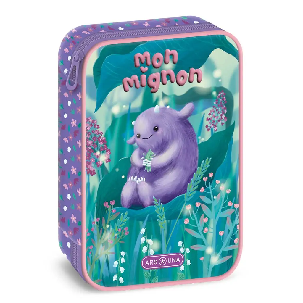 Viacúrovňový peračník Mon Mignon nie je len roztomilý, ale aj super praktický, takže je ideálnou voľbou pre malých školákov! Výnimočný fialový dizajn s chlpatou postavičkou okamžite očarí deti a pozadie s kvetinami, ktoré pripomína rozprávkovú atmosféru, ho robí ešte krajším. Milá, usmievavá bytosť určite vyčarí úsmev na tvári tvojho dieťaťa každý deň.