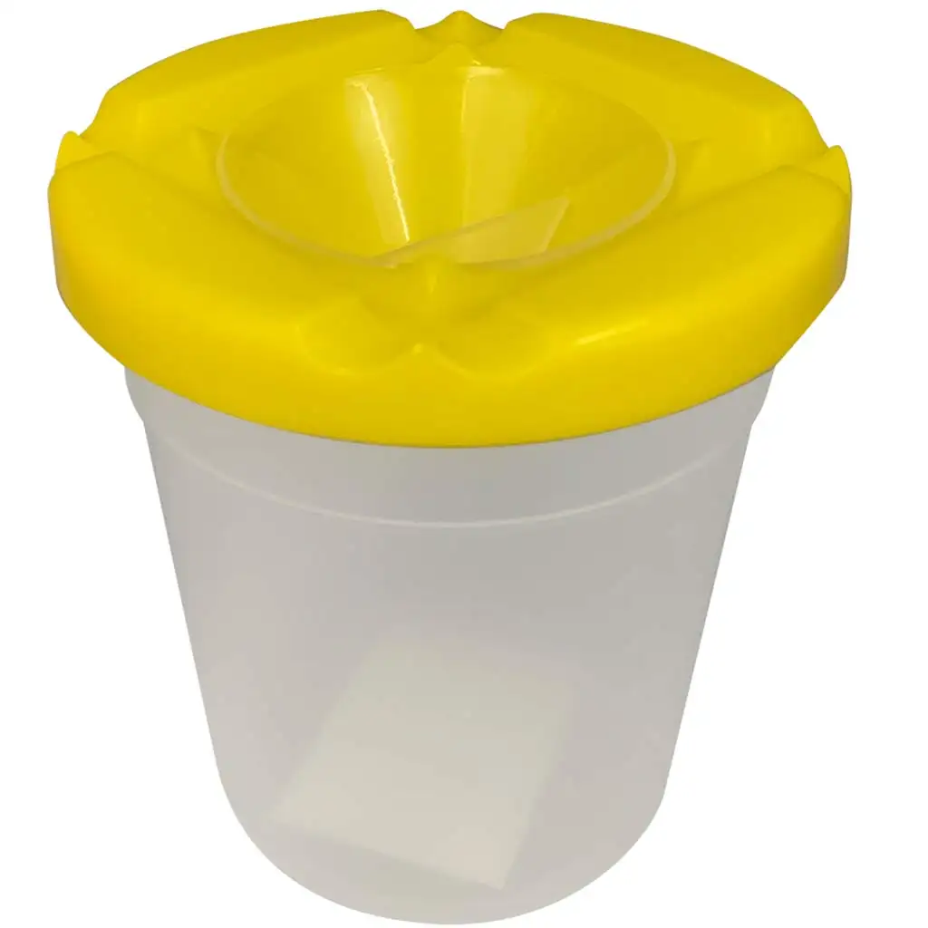 Pohár na umývanie štetcov Ars Una so žltým vrchnákom je vynikajúcou voľbou pre každého malého umelca, ktorý rád udržiava svoje nástroje čisté počas maľovania. Tento plastový pohár na umývanie štetcov ponúka jednoduché a praktické riešenie na čistenie štetcov. Otvor na žltom vrchnáku umožňuje ľahké ponorenie štetcov do pohára, takže ich môžete rýchlo a efektívne čistiť pomocou rozpúšťadla pre danú maľovaciu techniku. Drážky na vrchnáku umožňujú horizontálne uloženie štetcov, čo je užitočné, keď si chcete dať prestávku v maľovaní a nechcete, aby sa štetce kotúľali. Pohár je vyrobený z odolného a ľahkého plastu, takže je ľahko skladovateľný a prenosný, vždy po ruke, keď ho potrebujete.