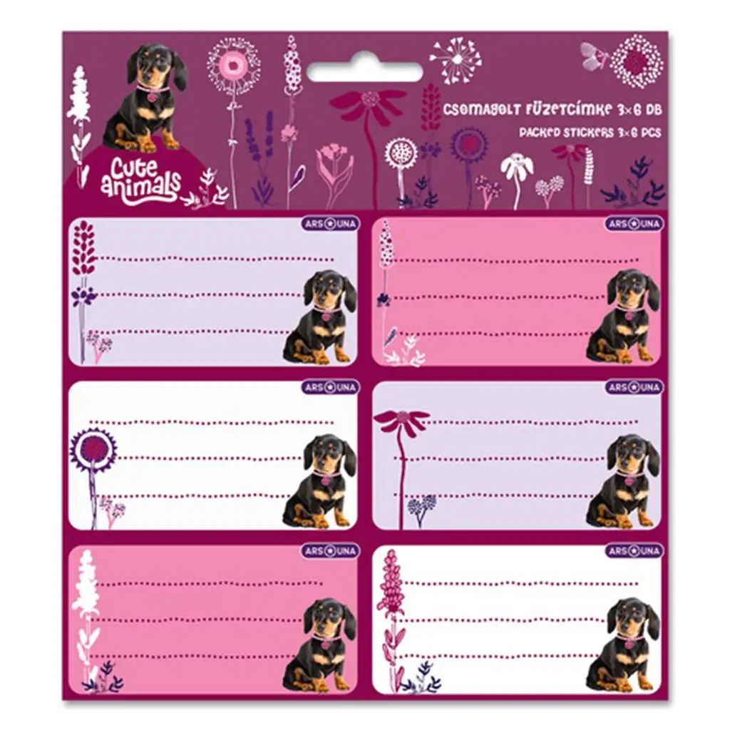 Ars Una: Rozkošné zvieratá - Balené zošitové etikety so psíkom 3x6 ks