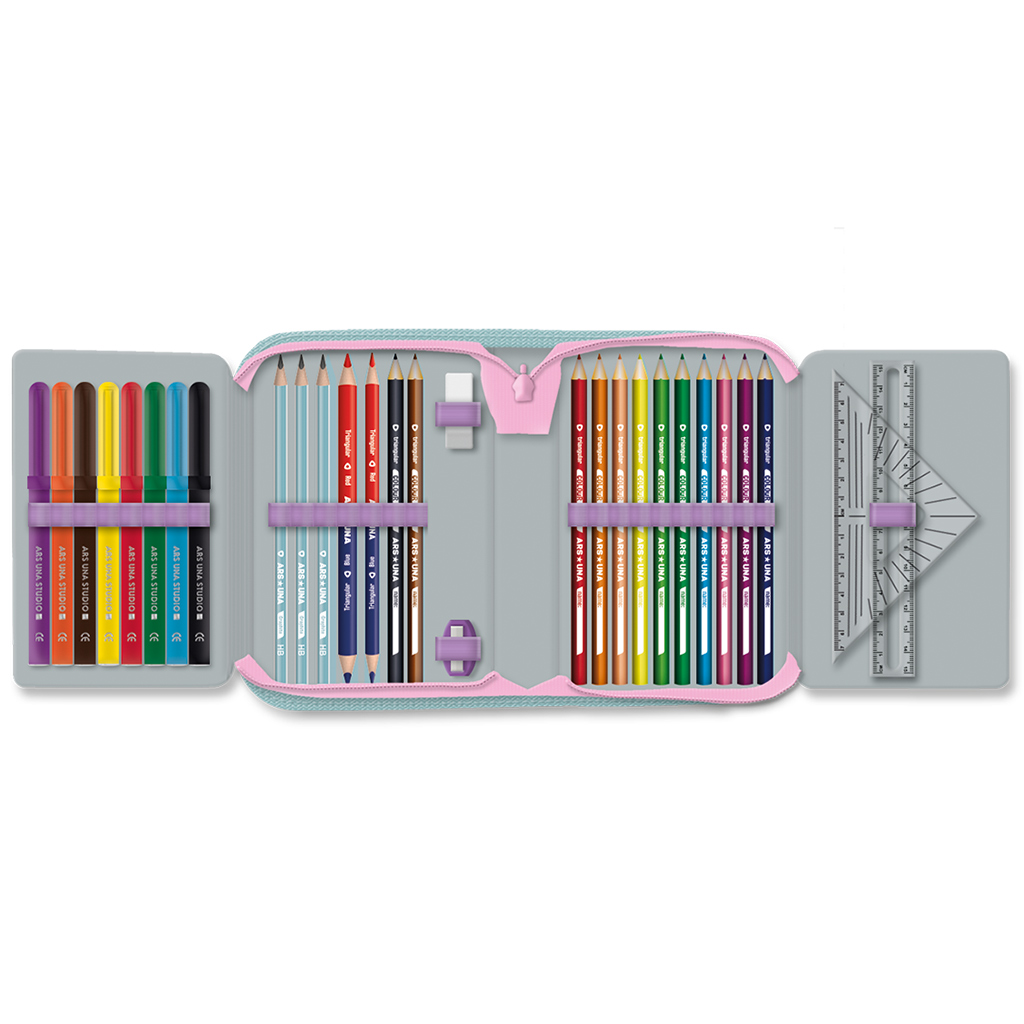 Ars Una Cute Animals Aussie plnené školské puzdro s motívom psa je dokonalou voľbou, ak vaše dieťa miluje roztomilé šteňatá a hľadáte praktický, no zároveň veselý školský doplnok. Roztomilý motív austrálskeho ovčiaka okamžite vyčarí úsmev na tvári, takže učenie bude ešte príjemnejšie. Rozkladací dizajn pomáha udržať všetky písacie potreby usporiadané a ľahko dostupné. Puzdro je kompletne vybavené, takže všetky potrebné pomôcky sú k dispozícii pre každodenné školské úlohy a kreatívnu tvorbu. Odolné prevedenie zabezpečuje spoľahlivé používanie dlhodobo.