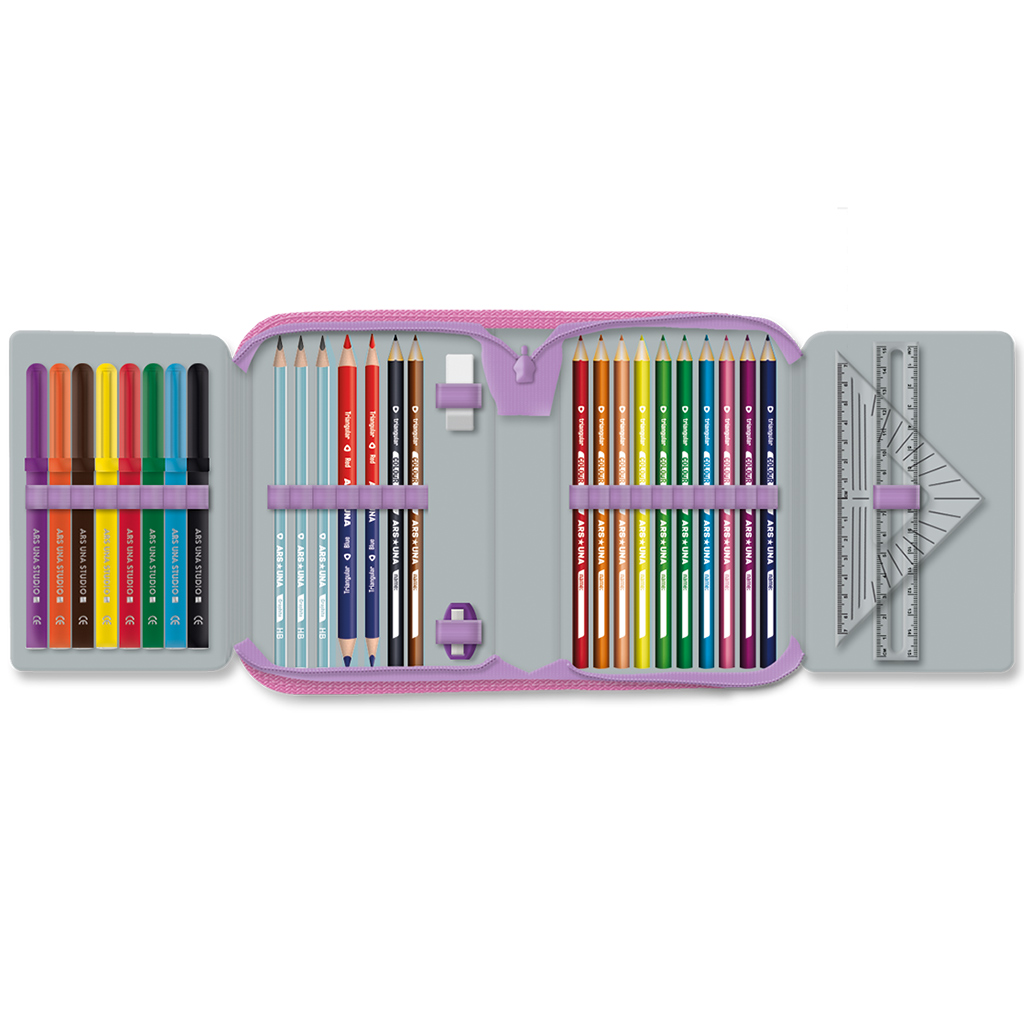 Ars Una Cute Animals naplnený peračník s motívom koní je ideálnou voľbou, ak tvoje dieťa miluje rozkošné zvieratká a hľadáš praktický, no zároveň veselý školský doplnok. Roztomilý motív s koňmi a kvetinové pozadie z neho robia naozaj príťažlivý kúsok, takže ho bude tvoje dieťa každý deň s radosťou vyťahovať. Vďaka rozkladacej konštrukcii sa všetky písacie potreby dajú prehľadne a upravene uložiť. Peračník je kompletne vybavený, takže obsahuje všetky potrebné pomôcky na učenie a kreatívne tvorenie. Odolná konštrukcia zaručuje dlhodobé používanie.