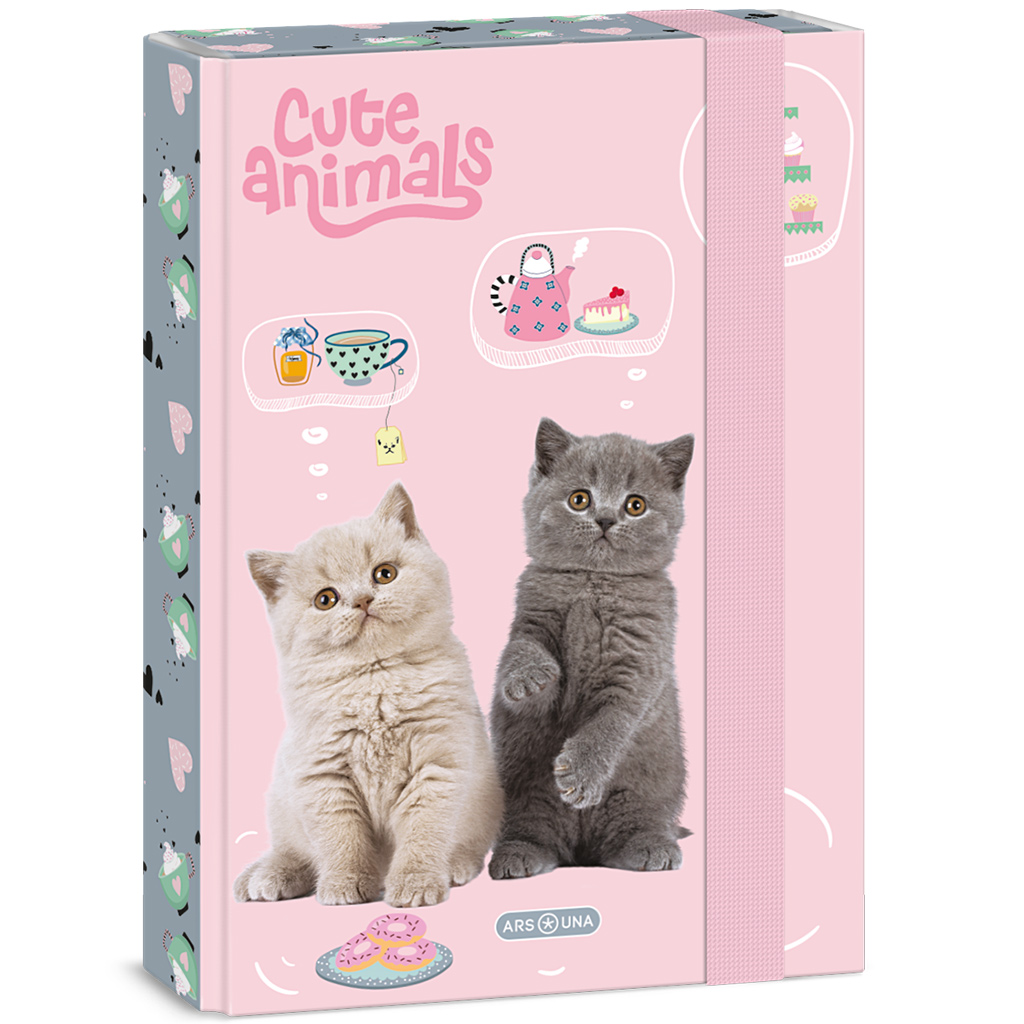 Ars Una: Cute Animals – Tea Party box na zošity A/5 s mačkami je skutočne milou voľbou, ak vaše dieťa má rado roztomilé zvieratká a hravé vzory. Rozkošné mačiatka a ilustrácie s čajovou atmosférou dodávajú veselý, príťažlivý vzhľad, ktorý určite spríjemní školské dni. Pevné, tvrdé kartónové puzdro chráni zošity a dôležité dokumenty pred pokrčením, zatiaľ čo gumička zabezpečí, že všetko zostane bezpečne na svojom mieste. Praktické a štýlové riešenie do školy i na domáce usporiadanie.