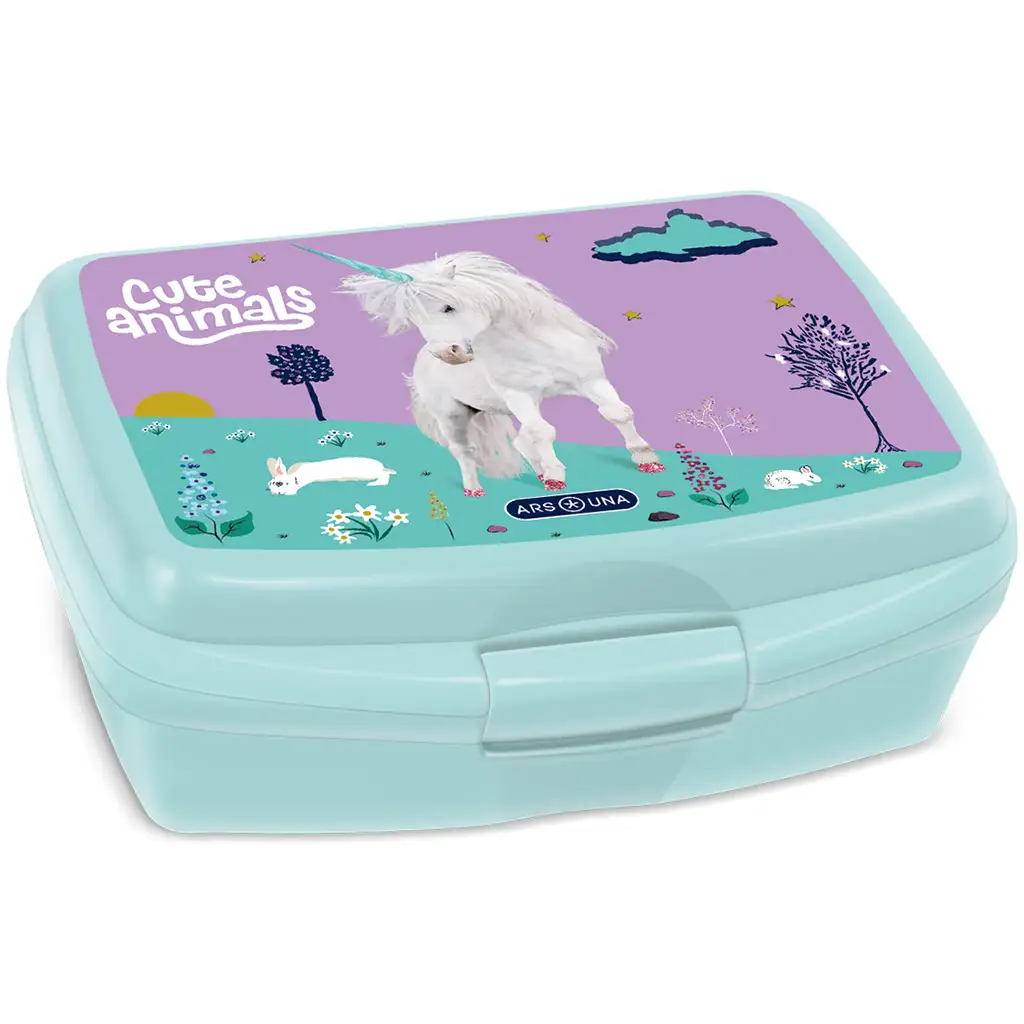 Uzáver Cute Animals Unikornis je magická, no zároveň praktická voľba pre školáčky alebo škôlkarky, ktoré majú rady snové motívy a jedinečné doplnky. Na vrchnáku boxu je krásny biely jednorožec v pestrofarebnej rozprávkovej krajine, ktorý prináša inšpiratívnu a veselú atmosféru ku každej desiate a olovrantu.