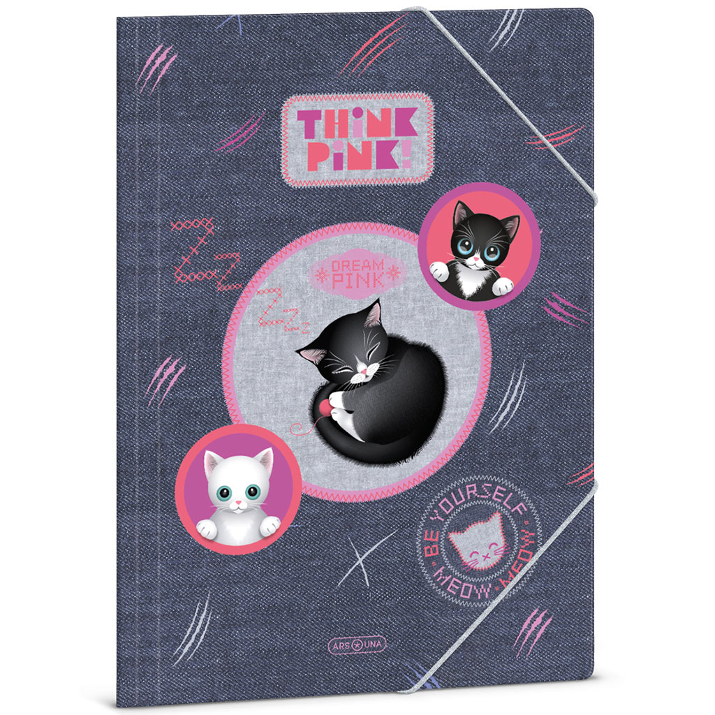 Ars Una: Think Pink roztomilé dosky s mačkami a gumičkou, veľkosť A4Ars Una: Think Pink roztomilé dosky s mačkami a gumičkou, veľkosť A4