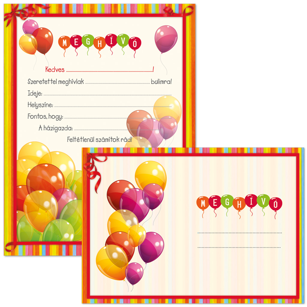 Ars Una: Veselá sada 10 ks pozvánok s balónikmi a obálkami