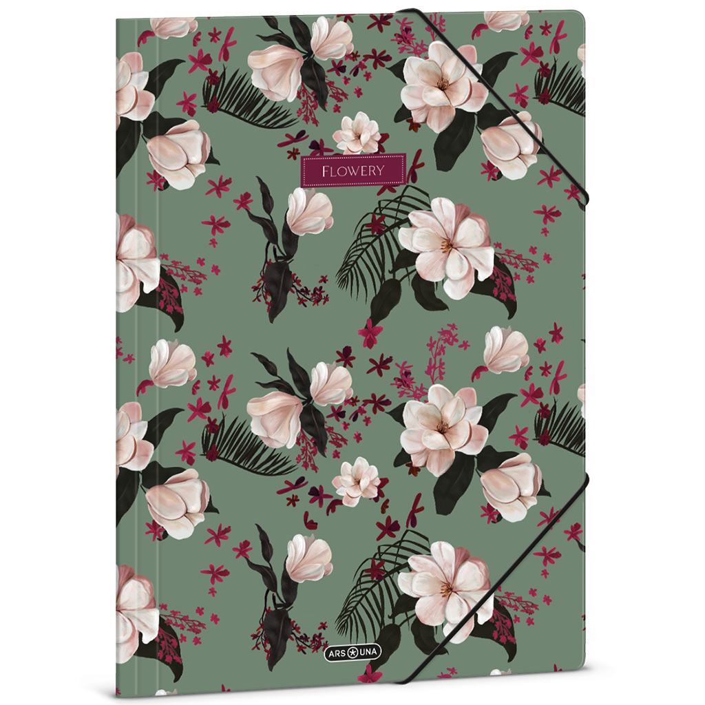Ars Una: Zelené dosky s kvetinovým vzorom a gumičkou, formát A4