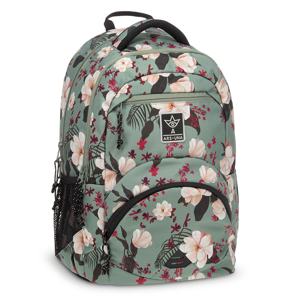 Ars Una: zelený ergonomický školský batoh s kvetinovým vzorom 27 lArs Una: zelený ergonomický školský batoh s kvetinovým vzorom 27 l
