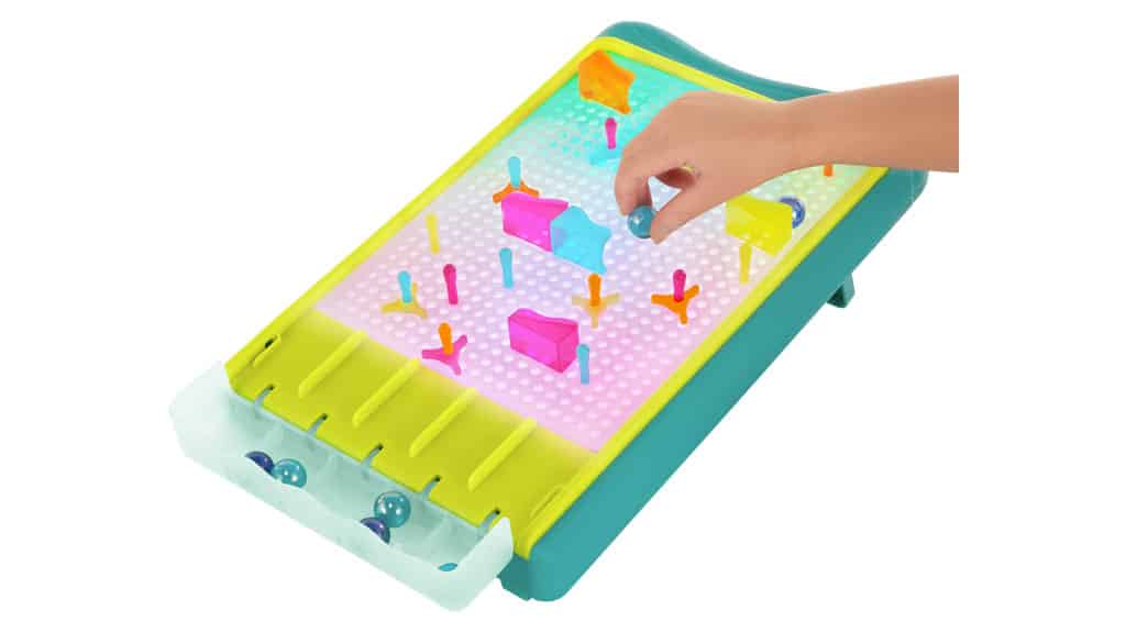 Svetelná mramorová kvapka od B. Toys - mramorová dráha je vzrušujúca hra v štýle herne, ktorá kombinuje kreatívne neonové umelecké plátno. Táto hra všetko v jednom sľubuje nekonečné hodiny vedomej zábavy, pretože spája kreativitu a zručnosť. Deti môžu používať farebné, jedinečné diely na stavbu vlastného mramorového bludiska. Keď guľa prechádza bludiskom, spadne do časti, ktorá zachytáva všetko, kde každá sekcia predstavuje rôzne bodové hodnoty. Koľko bodov získaš so svojou vlastnou mramorovou dráhou?