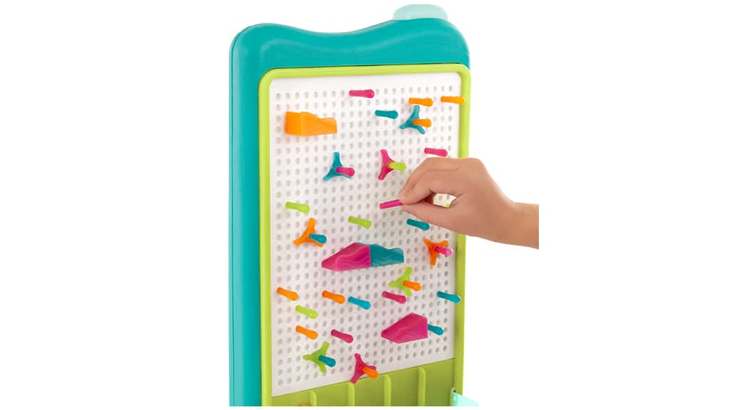 Svetelná guľôčková dráha B. Toys umožňuje deťom vytvárať si vlastné guľôčkové dráhy so zábavnými a farebnými prvkami. S týmito istými prvkami môžu deti pomocou šablón vytvárať umelecké diela na tej istej tabuli! Tabuľa svieti v vzrušujúcich farbách, takže labyrinty guľôčkovej dráhy a umelecké diela žiaria. Táto hračka nielenže rozvíja kreativitu, ale aj schopnosť riešiť problémy, zatiaľ čo deti si užívajú svet farieb a tvarov. Svetelná funkcia robí hračku obzvlášť atraktívnou, pretože poskytuje úchvatný pohľad aj v tme. Guľôčková dráha B. Toys je ideálnou voľbou pre všetkých malých vynálezcov a umelcov, ktorí chcú objavovať svoje vlastné kreatívne možnosti.