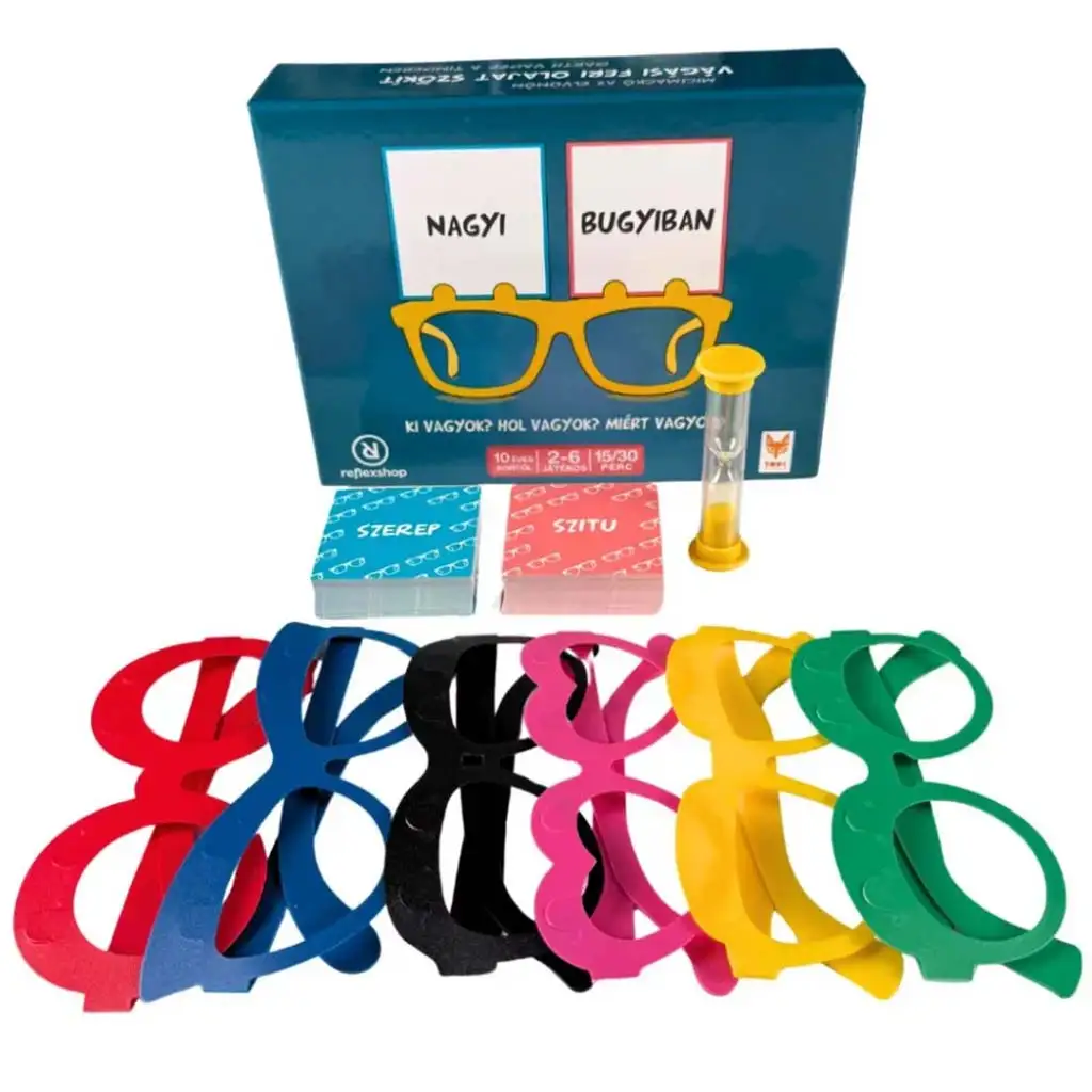 - Obsah balenia: 50 kariet s rolami, 50 kariet so situáciami, 24 prázdnych kariet, 6 okuliarov, 1 presýpacie hodiny, 1 pravidlá hry