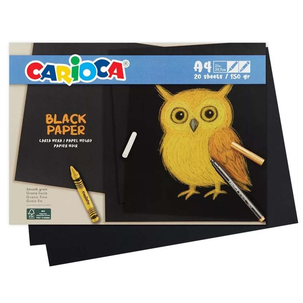Carioca balenie čiernych papierov formátu A4 je perfektnou voľbou, ak chceš, aby tvorivé výtvory tvojho dieťaťa boli ešte pôsobivejšie. Čierne pozadie dodáva každému obrázku osobitý vzhľad, vďaka čomu svetlé farby, kriedy alebo gélové perá na ňom vyniknú skutočne živo. Ideálne pre tvorivé dielne, domáce tvorenie alebo aj školské úlohy.