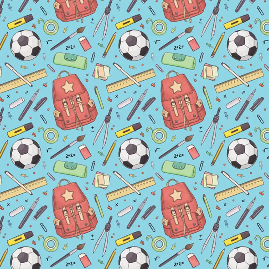 Svetlomodré pozadie je priateľské a dokonale sa hodí k darčekom pre chlapcov aj dievčatá. Vzor papiera je usporiadaný diagonálne, takže ho ľahko prispôsobíš akémukoľvek tvaru balíčka a vždy bude vyzerať dobre. Ideálna voľba na narodeniny, začiatok školského roka, Deň učiteľov alebo aj na balenie vianočných prekvapení, ak je darček školský alebo športovo ladený.