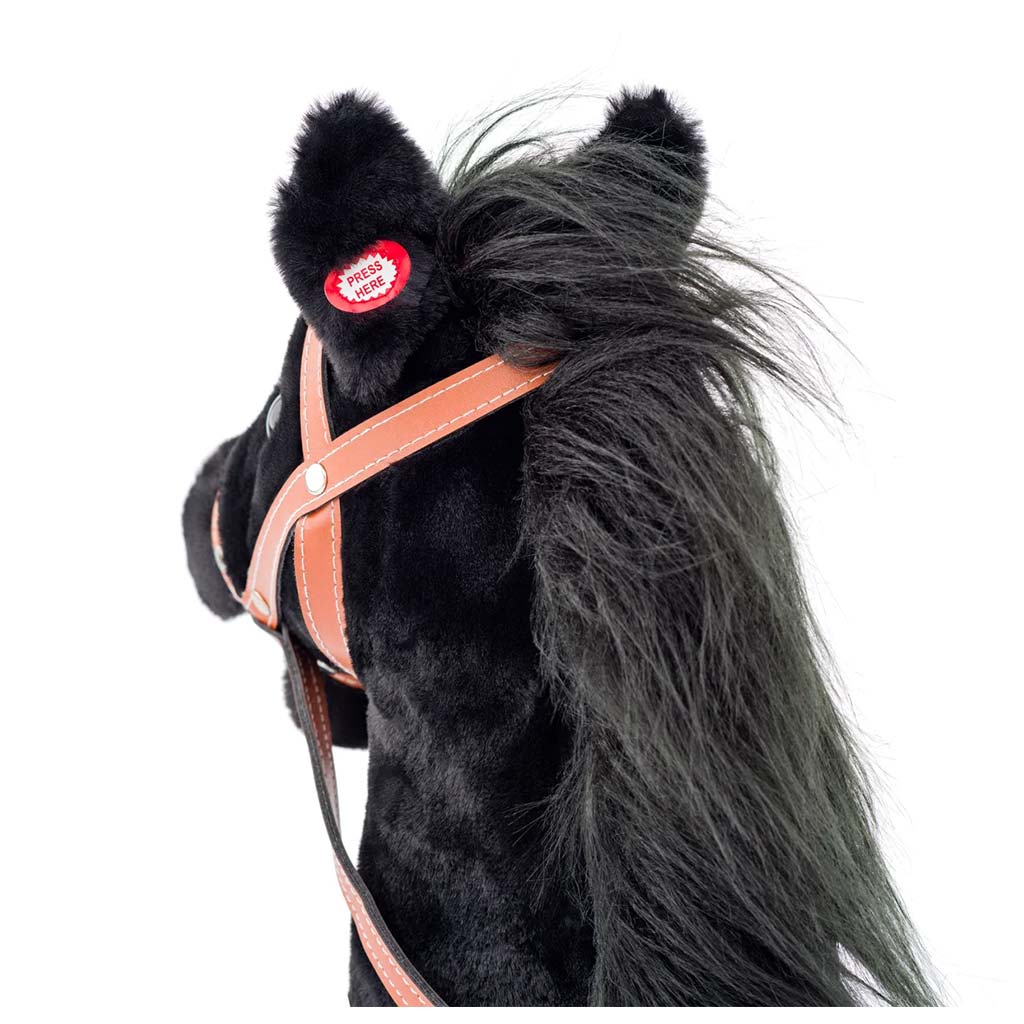 Baron, hobby koník so zvukom, je perfektnou voľbou pre každého malého jazdca, ktorý sníva o vlastnom stáde a vzrušujúcich cváloch. Detailne prepracovaná, mäkká plyšová hlava koníka zabezpečuje realistický vzhľad: čierna srsť, hodvábne hebká hriva a hnedá uzda ho robia naozaj realistickým. Baron nie je len hračka, ale verný spoločník pri tvorivých dobrodružstvách – či už ide o preteky, prekážkovú dráhu alebo o imaginárny výlet.