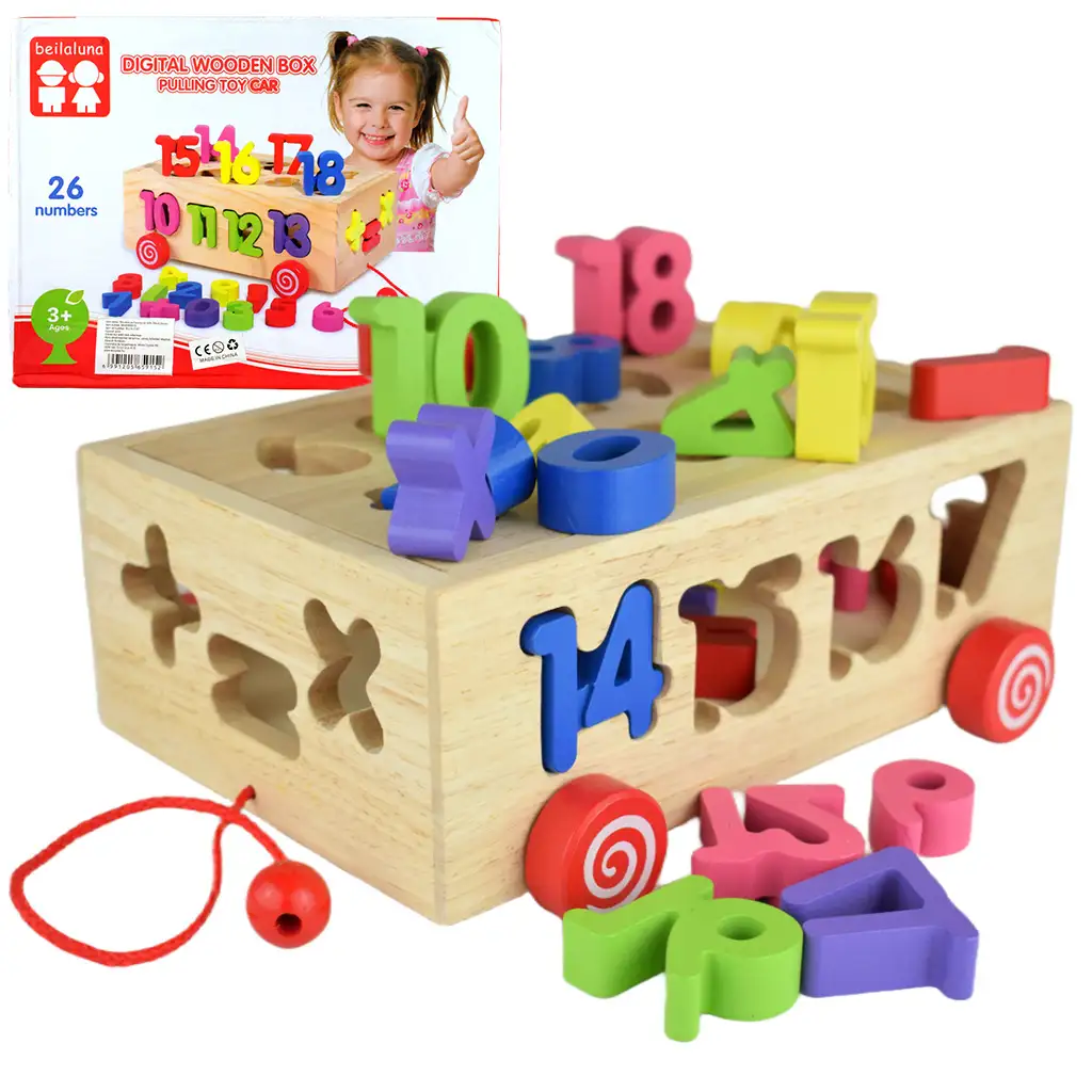 Beilaluna: Drevený tvarový sorter s číslami na ťahanie