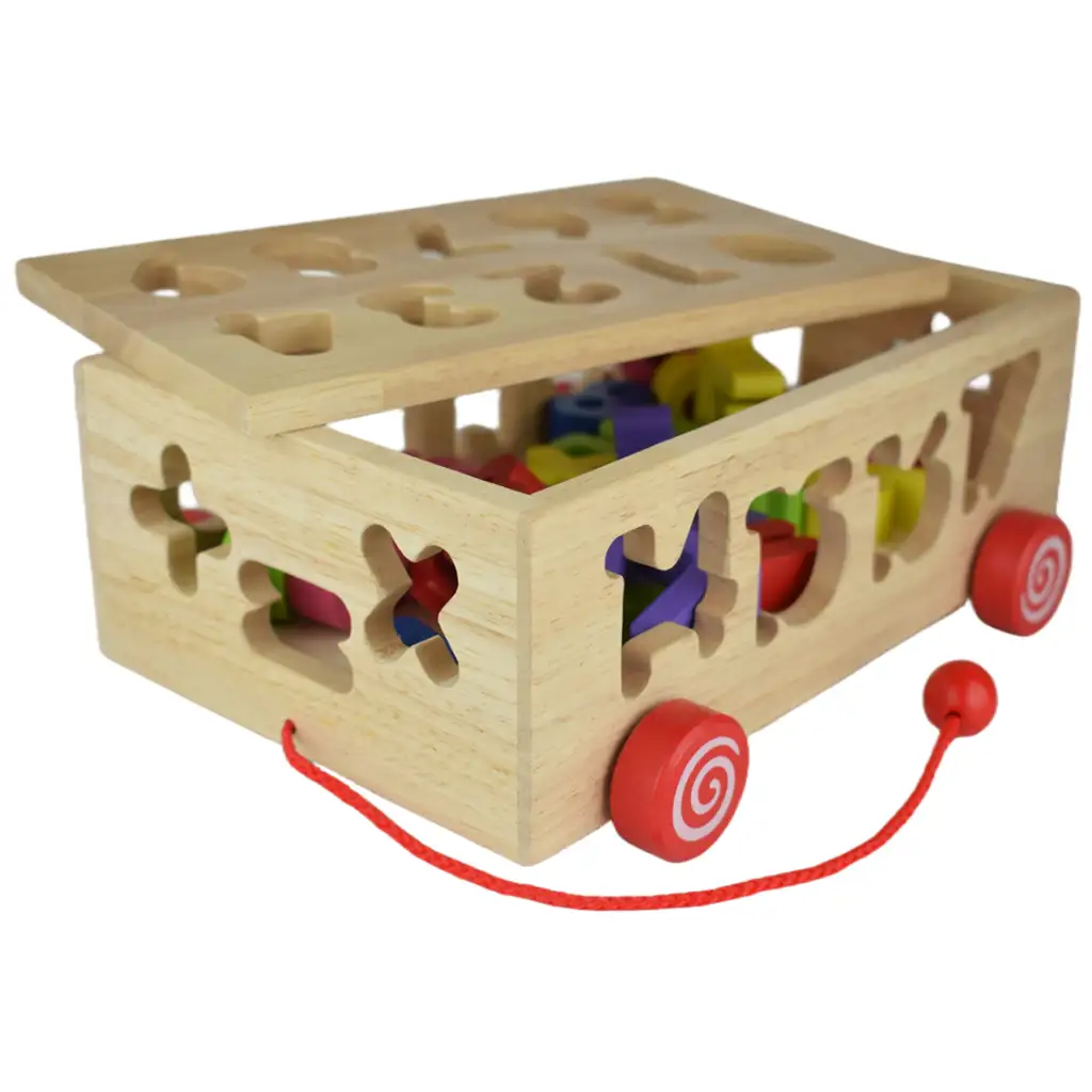 Tento drevený vozík s rôznymi tvarmi je perfektnou voľbou pre deti, poskytuje skvelú zábavu a rozvoj zručností. Hračka nie je len zábavná, ale aj prémiovej kvality, keďže každý drevený diel je perfektne vybrúsený a diely dokonale pasujú k sebe. To nielen poskytuje estetický zážitok, ale zároveň zaručuje dlhú životnosť hračky, vďaka odolnému drevenému materiálu, ktorý je odolný a má dlhú životnosť.