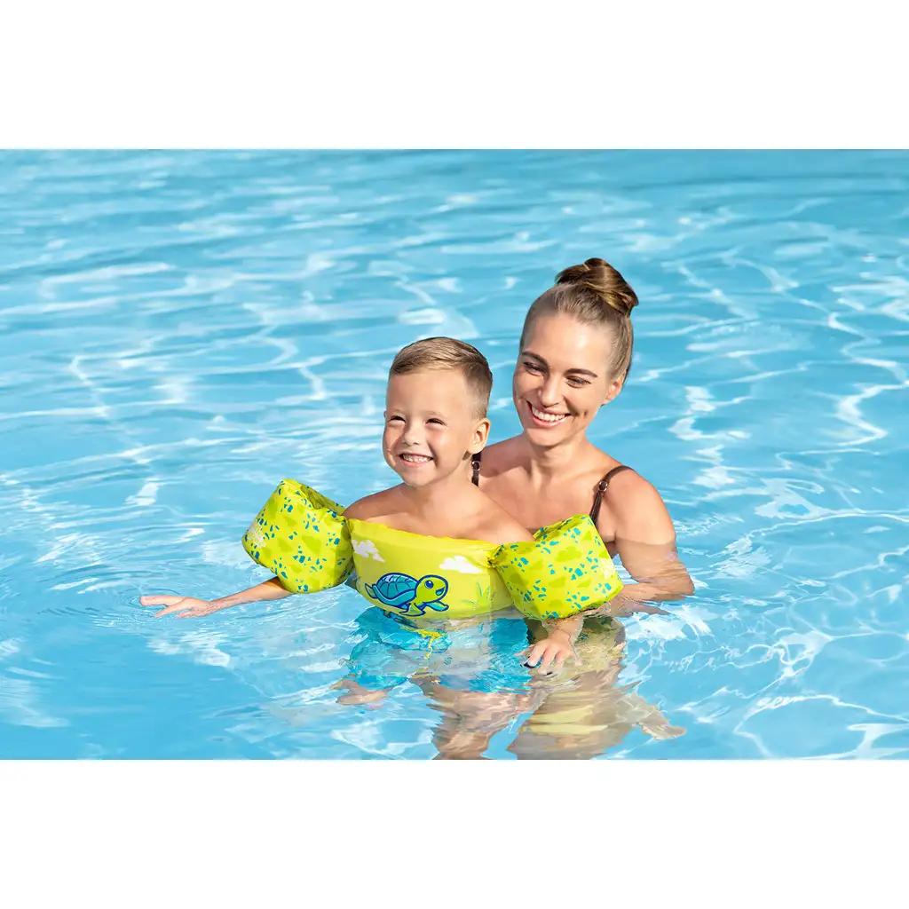 Spríjemnite a zároveň zvyšujte bezpečnosť pri trávení času vo vode s touto veselou plávacou vestou Bestway s motívom korytnačky! Žlto-zelené farebné prevedenie a rozkošná grafika korytnačky okamžite upútajú pozornosť detí, pričom praktický dizajn im pomáha zvykať si na vodu a zvládať prvé plavecké pohyby.