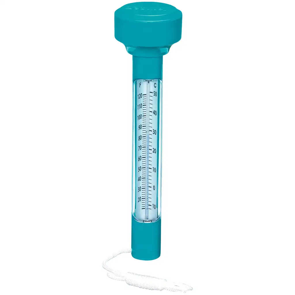 Teplomer je vyrobený z odolného plastu, ktorý dobre odoláva slnečnému žiareniu a vplyvom vody, takže bude dlhodobo spoľahlivým spoločníkom v bazéne. Pomocou priloženej šnúrky na upevnenie ho ľahko pripevníte k okraju bazéna, takže ho budete mať vždy po ruke a nebude vám odplávať do stredu bazéna.