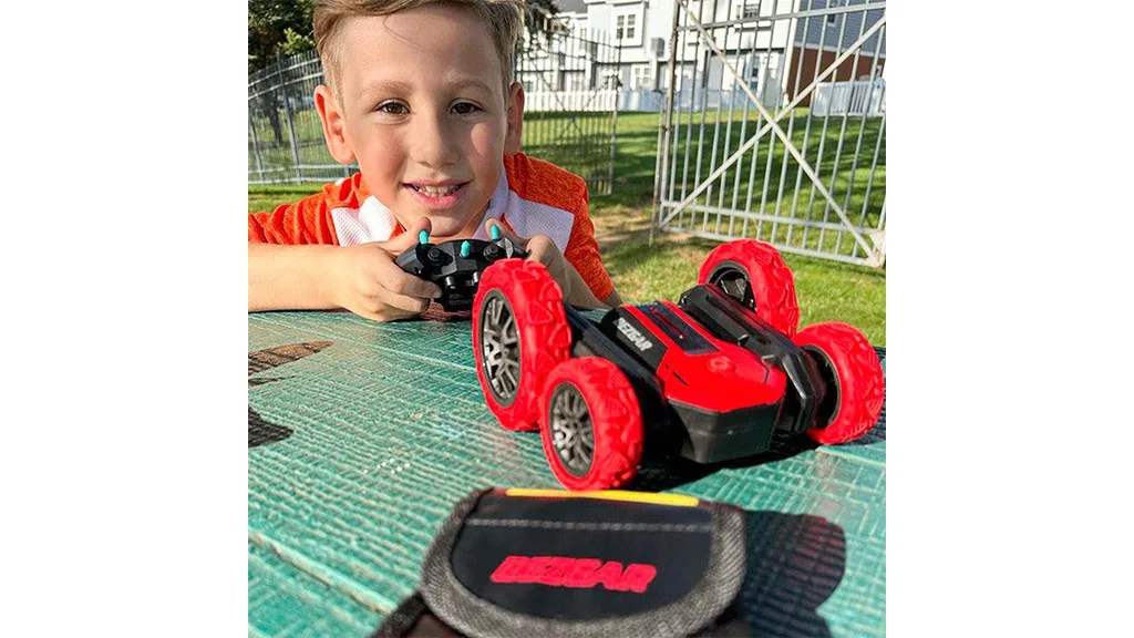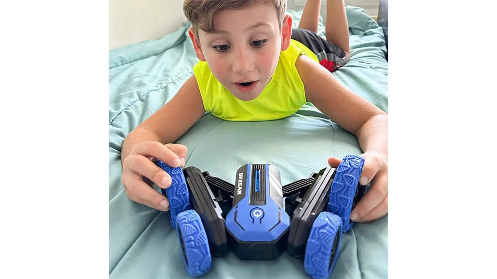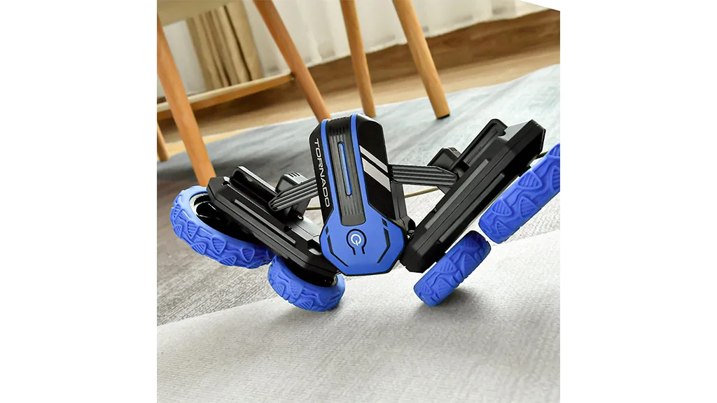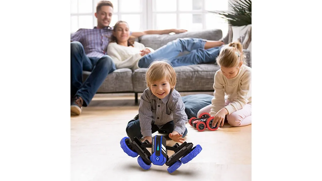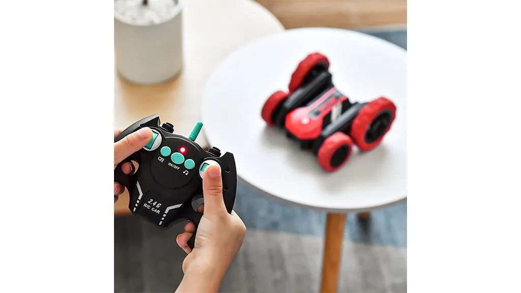 RC Stunt Car, ktorý bol navrhnutý pre deti vo veku 6 rokov a staršie, je určený pre akciu. Vozidlo má veľké kolesá, takže dokáže jazdiť aj keď je prevrátené na strechu. Okrem toho má špeciálnu zadnú nápravu, ktorá rozťahuje kolesá, čo je ideálne pre otáčanie. Na diaľkovom ovládači sa nachádza ďalšie tlačidlo, ktoré aktivuje režim Tornádo, kde RC Stunt Car sa točí na predných kolesách, zatiaľ čo zadné kolesá sú vo vzduchu. Sú k dispozícii tri rôzne rýchlosti otáčania pre rôzne úrovne epického zábavy.
