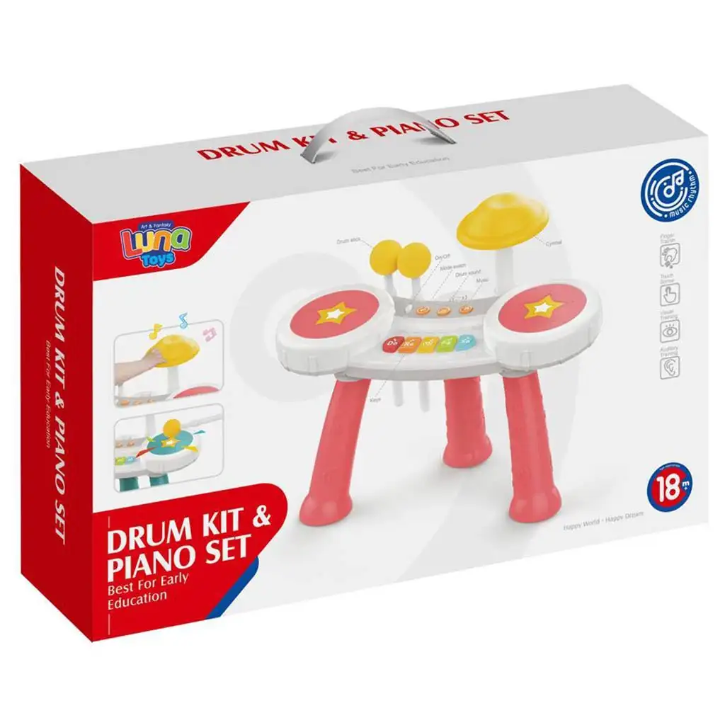 Ponorte sa do sveta hudby s týmto jedinečným 2 v 1 hudobným nástrojom, ktorý bol špeciálne navrhnutý pre fanúšikov rytmu a melódií. Tento ružový, vysoko kvalitný nástroj môže byť použitý ako bicie a klavír, čo umožňuje deťom vyjadriť sa v širokom spektre hudobných oblastí. Bicie sú ideálne pre tých, ktorí majú radi rytmus. Bicie znejú v rôznych veľkostiach a tónoch, čo poskytuje jedinečný zvuk, keď sú udierané.