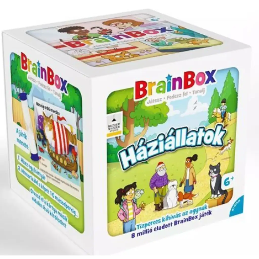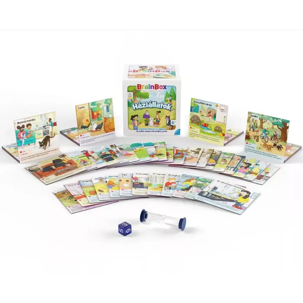 Hra BrainBox – Domáce zvieratá je skvelou voľbou pre každého malého milovníka zvierat, ktorý rád súčasne učí sa aj hrá! Táto náučná pamäťová hra je odporúčaná od 6 rokov a prostredníctvom farebných, veselých kariet predstavuje deťom najobľúbenejšie domáce zvieratá – psy, mačky, zajace, korytnačky a mnoho ďalších obľúbencov. Cieľom hry je, aby si deti za 10 sekúnd zapamätali čo najviac informácií z karty a potom po hode zodpovedali na náhodnú otázku o nej.