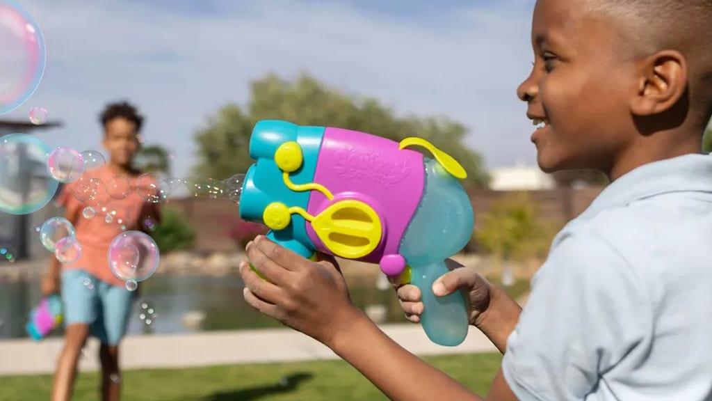 Deti môžu ľahko začleniť bubliny a vodu do hry pomocou jednoduchého otočného prepínača. Obe časti zbrane sa dajú jednoducho znovu naplniť, takže malí môžu rýchlo pridať viac vody alebo roztoku na bubliny, než sa vrátia späť na slnko. Veľká spúšť je vhodná pre menšie aj väčšie ruky, takže sa môže hrať celá rodina spolu. Balenie obsahuje viac ako 9 uncí roztoku na bubliny, čo zaručuje hodiny aktívnej zábavy. Táto hračka nie je len zábavná, ale rozvíja aj pohybovú koordináciu a tímovú prácu, zatiaľ čo deti hrajú vonku a užívajú si spoločné zážitky.Táto hra funguje na batérie, preto rodinám odporúčame zaobstarať si 4 kusy AA batérií ešte pred začiatkom hry. Predbežným zakúpením batérií sa dá vyhnúť nepríjemným prekvapeniam a deti si môžu hru okamžite užívať. Je dôležité vybrať si kvalitné batérie, aby hra fungovala dlhšie a nebolo potrebné ich často vymieňať.