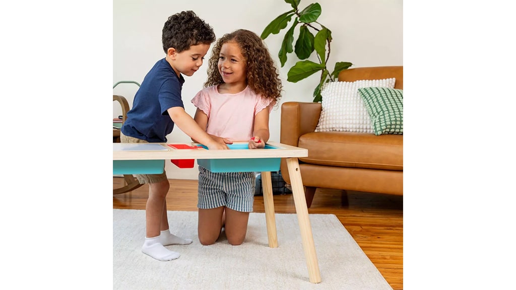 Ľahko zostaviteľný stôl nevyžaduje na montáž žiadne náradie. Aktivity podporujú učenie, kreativitu a rozvoj jemnej motoriky. Na konci hry môžu deti ľahko upratať hračky pomocou úložných boxov a viek. Je ideálny pre deti predškolského a mladšieho školského veku, pretože im pomáha rozvíjať zručnosť a schopnosti riešiť problémy.